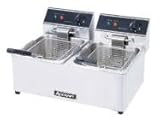 Adcraft deep fat fryers are designed to create a delicious variety of crisp fried food with minimal fuss. Delight your customers with french fries, chicken, seafood, and more. * Ideal for small pubs, colleges, and product-specific applications * Dual unit provides increased volume and separation of food types to prevent flavor transfer from oil * Lift-out, one-piece stainless steel tank with carrying handles for easier cleaning * Minimal footprint to accommodate tight counter spaces * Twin thermostat control switches (120 to 375 degrees) * "Power On" indicator light * Non-skid rubber feet prevent slipping * Ships with two baskets Covers Included * Heavy duty stainless steel construction * Two separate fryers in one unit * Cooking capacity 15 lbs/hour per tank Tank capacity 6 liters each * Each tank has it's own 6' grounded cord * Measures 21-3/4" x 16" x 11-1/4" * Each unit requires a separate 15 amp circuit * 120V 1750W per tank * NSF UL CE